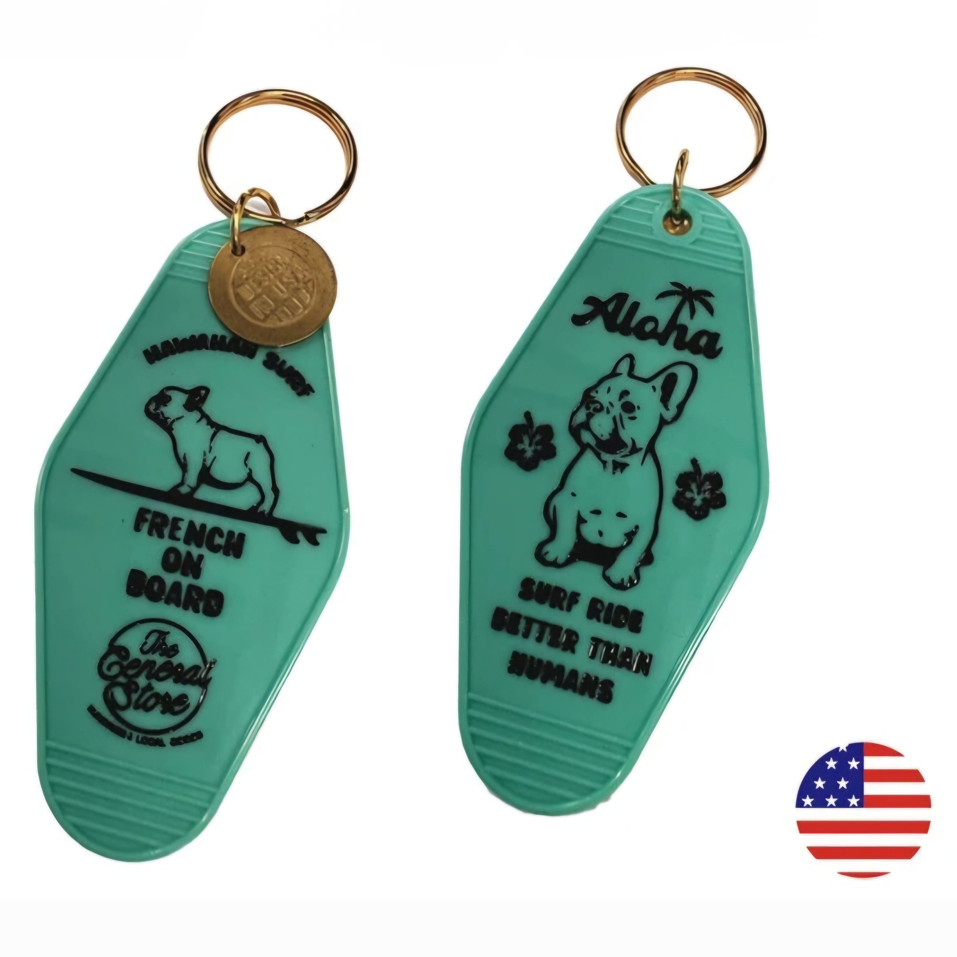 1960年〜1980年代頃にアメリカのホテルやモーテルで実際に使われていたキータグを復刻しました。印刷がホットスタンプになっているので、プリント文字が凹凸があり存在感があります。デザインを集めて壁にかければまさにアメリカのホテルのロビーのような雰囲気になります。ガレージに飾ってもお洒落です。