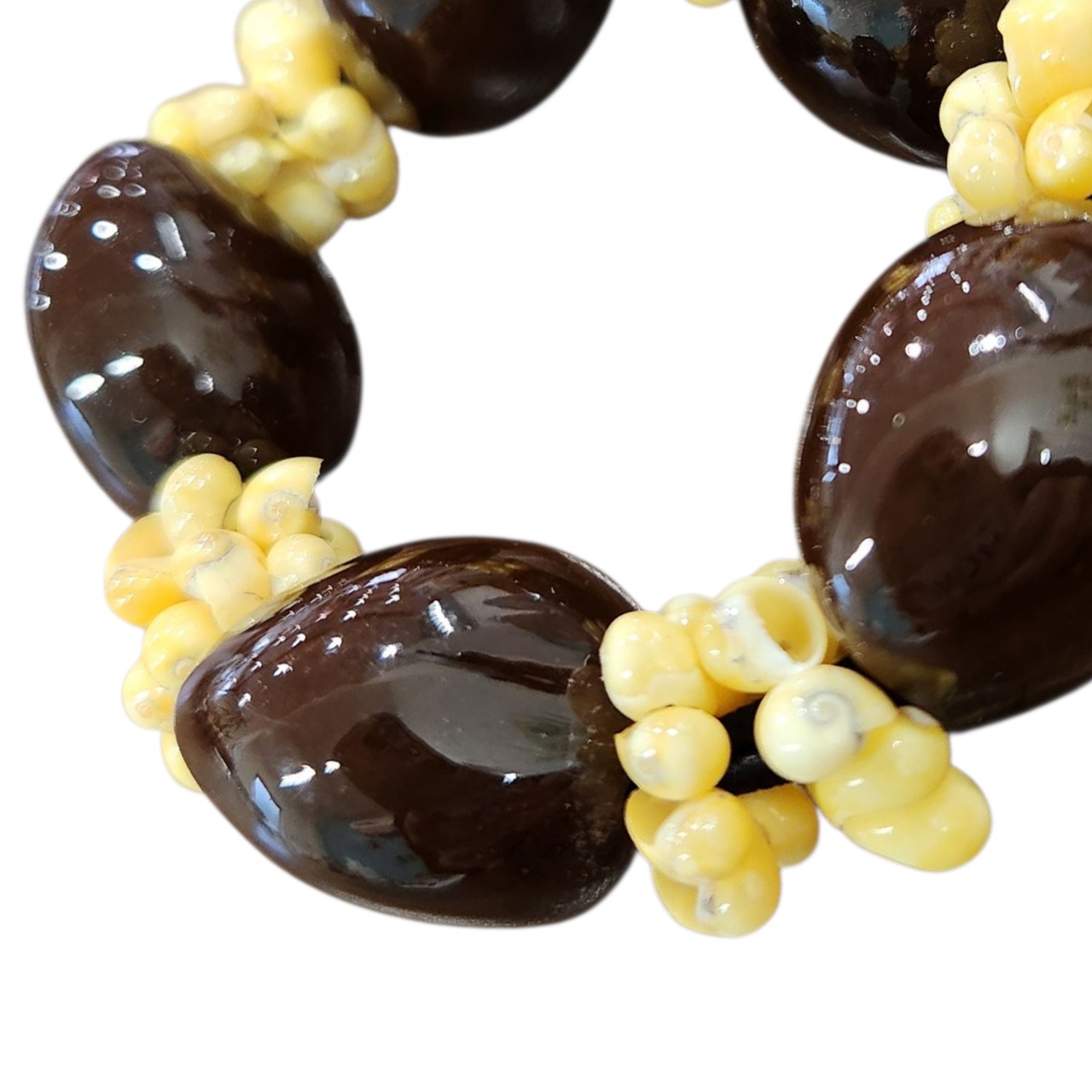【ハワイ直輸入 天然ククイナッツ モンゴシェル ブレスレット】ブレスレット ククイ ククイナッツ ハワイ ハワイアン雑貨 ファッション小物 南国 HAWAII ブラウン イエロー 手首 レディース プレゼント フリーサイズ アクセサリー フラダンス 衣装 | LOCOLOHA(ロコロハ)