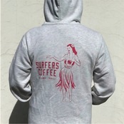 【SURFERS COFFEE バックロゴ ジップパーカー フラガール】パーカー SURFERSCOFFEE サーファーズコーヒー バックロゴ グレー サーフ サーファー トレーナー フーディー フラガール コーヒー ハワイ ファッション かっこいい メンズ レディース | LOCOLOHA(ロコロハ)