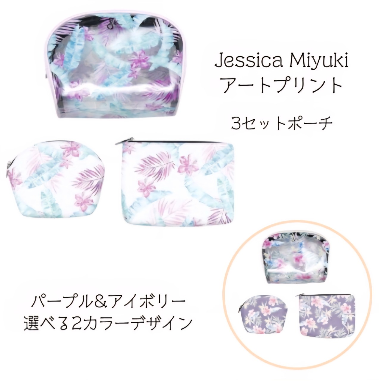 【Jessica Miyuki 3セットポーチ】 ジェシカミユキ ポーチ トラベルポーチ 収納 小物入れ 化粧ポーチ レイ ハワイアン ハワイ フラダンス フラガール アロハ バッグ フラワー レッスン ギフト 日用品 生活雑貨 ハワイアン雑貨 | LOCOLOHA(ロコロハ)