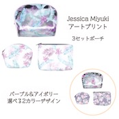ロサンゼルスを拠点に活動しているサーフアーティスト「Jessica Miyuki (ジェシカ・ミユキ)」のアートをプリントした、3点セットのポーチ。