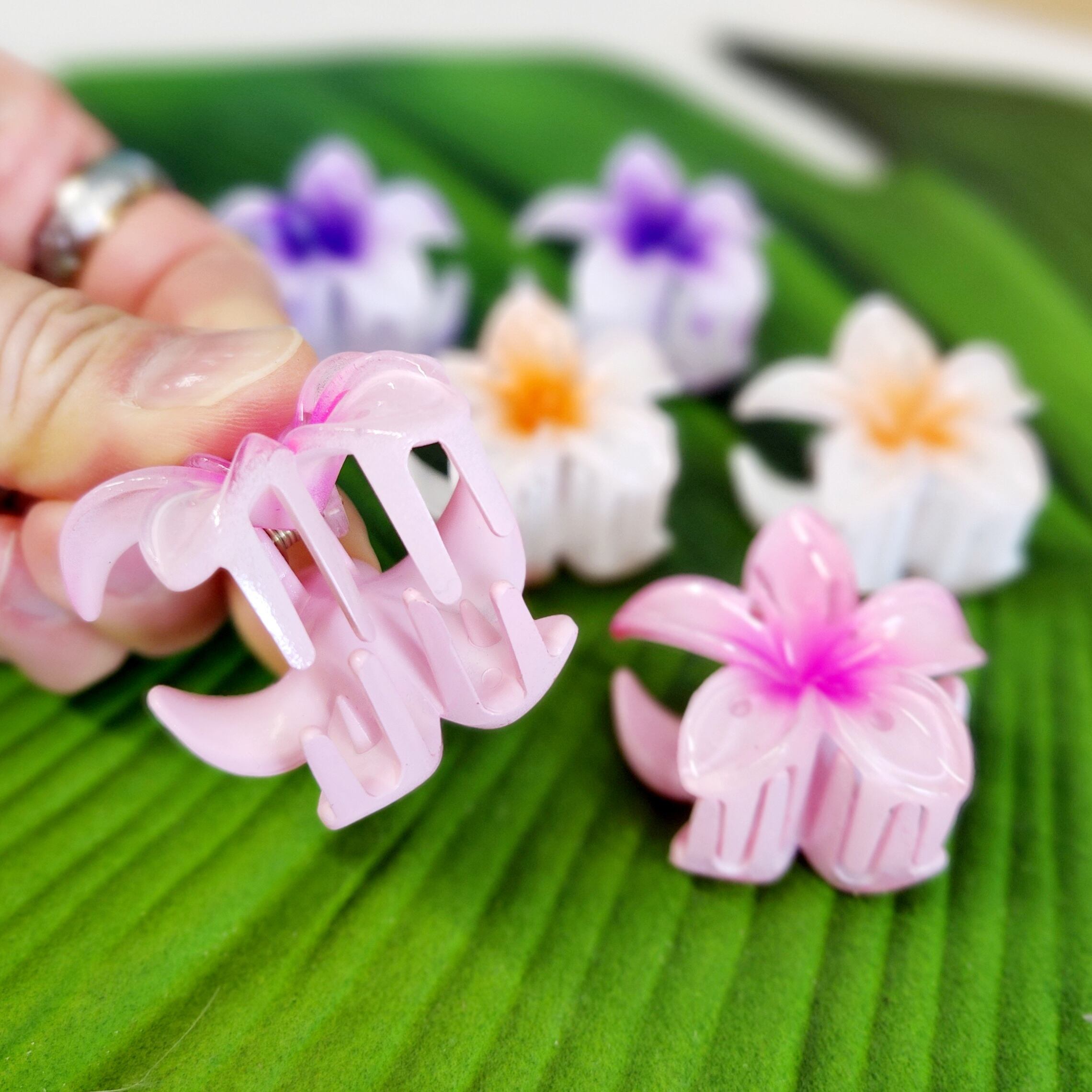 ハワイアン、リゾートテイストにピッタリなプルメリア型ヘアクリップ