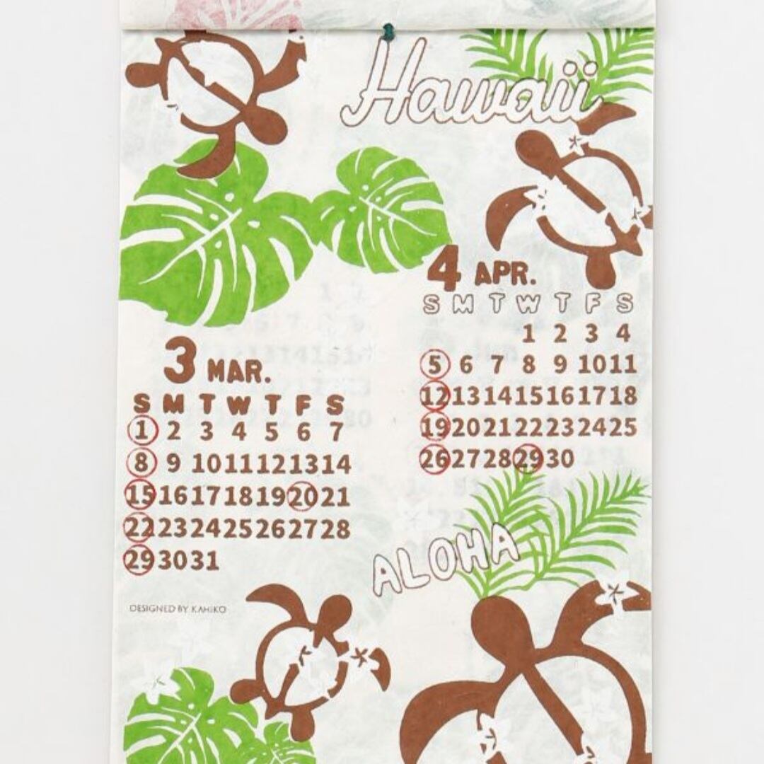 海の守り神といわれているホヌ(ウミガメ)の表紙が目を引くカレンダー。環境にやさしいエコな素材で作られていて、ハワイの自然を大切にする優しさが詰まっています。表紙+6ページ。