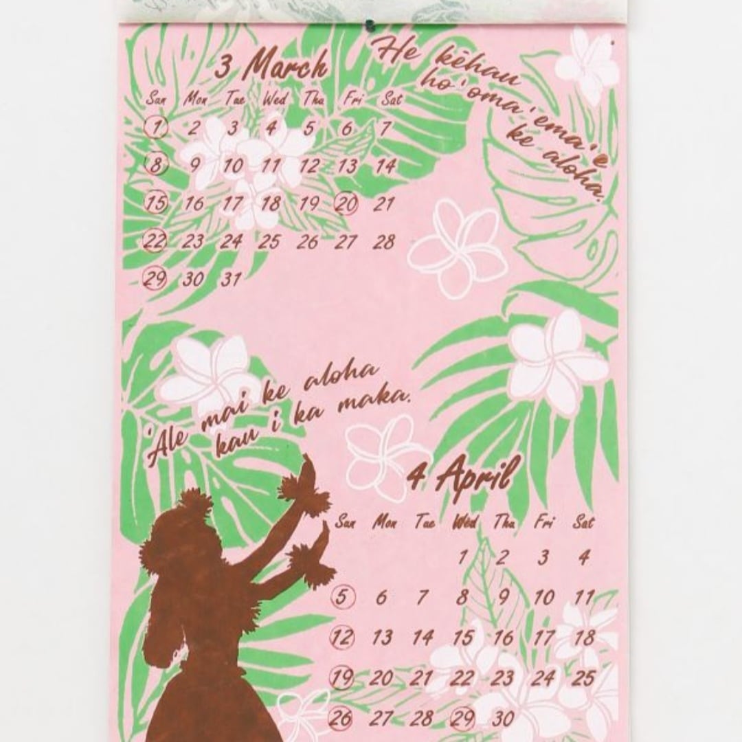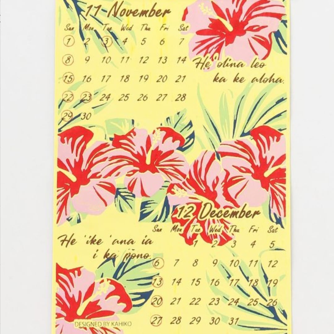 ハワイのことわざが全ページに綴られたカレンダー。環境にやさしいエコな素材で作られていて、ハワイの自然を大切にする優しさが詰まっています。表紙+6ページ。