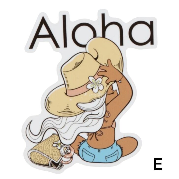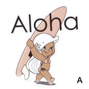 サーフィンとファッションをこよなく愛するキャラクター「Aloha Mapua (アロハマプア)」のステッカー。