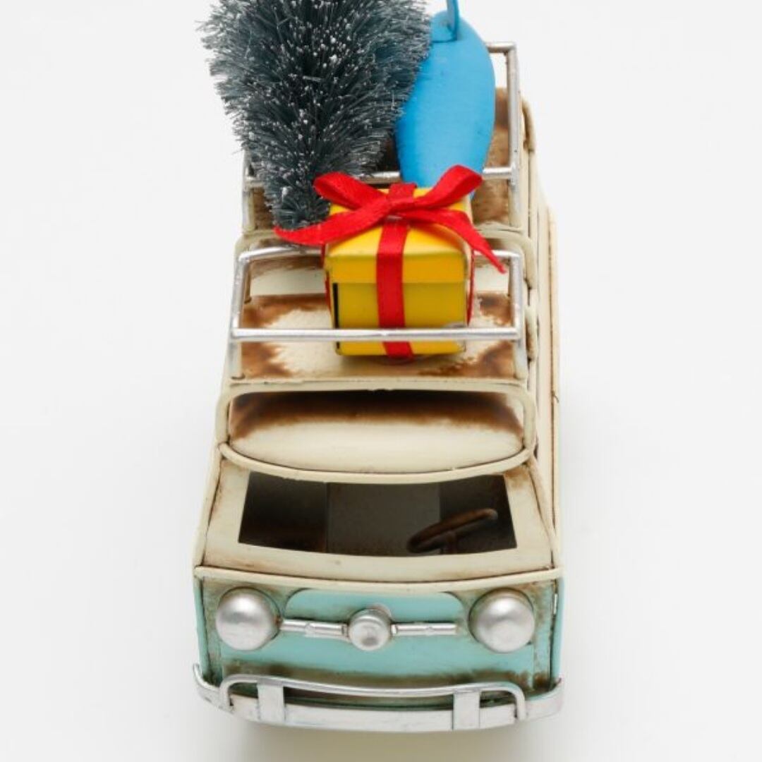 可愛らしいツリーを乗せたバスの置物。ハワイ語で「メリークリスマス」は「Mele Kalikimaka(メレ・カリキマカ)」。アロハの心を込めて「楽しいクリスマスをお過ごしください」という意味が込められています。
