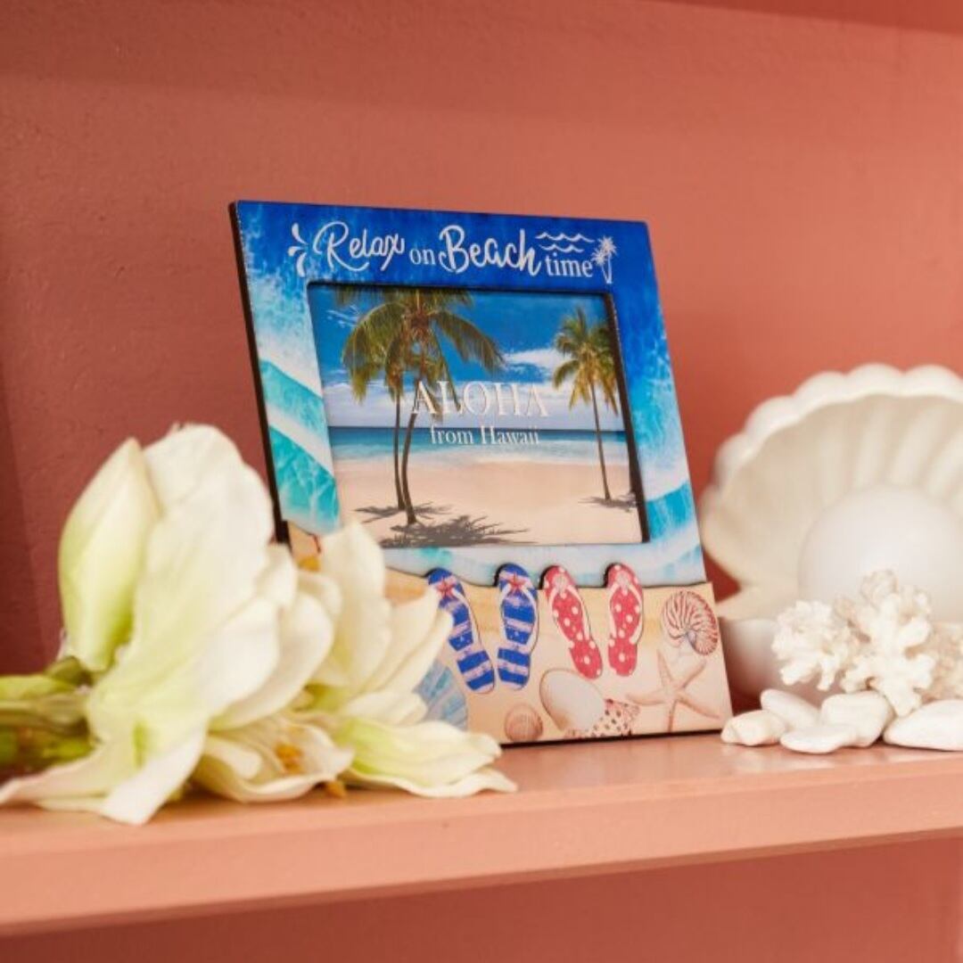 サンダルが並んだ可愛らしいデザインのフォトフレーム。ハワイの海を感じさせてくれます。大切な方と楽しかった思い出を飾るのにピッタリです。