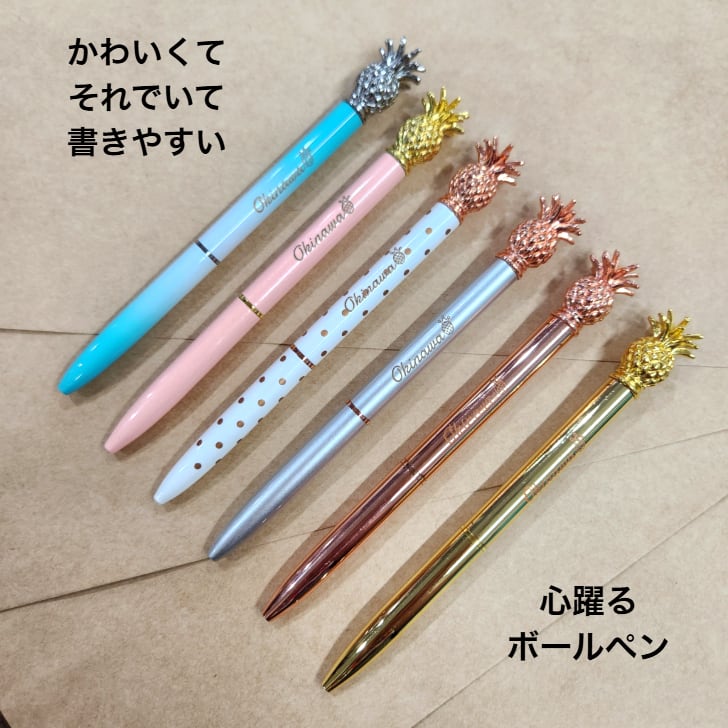 沖縄をイメージした、おしゃれなパイナップルモチーフのボールペン。