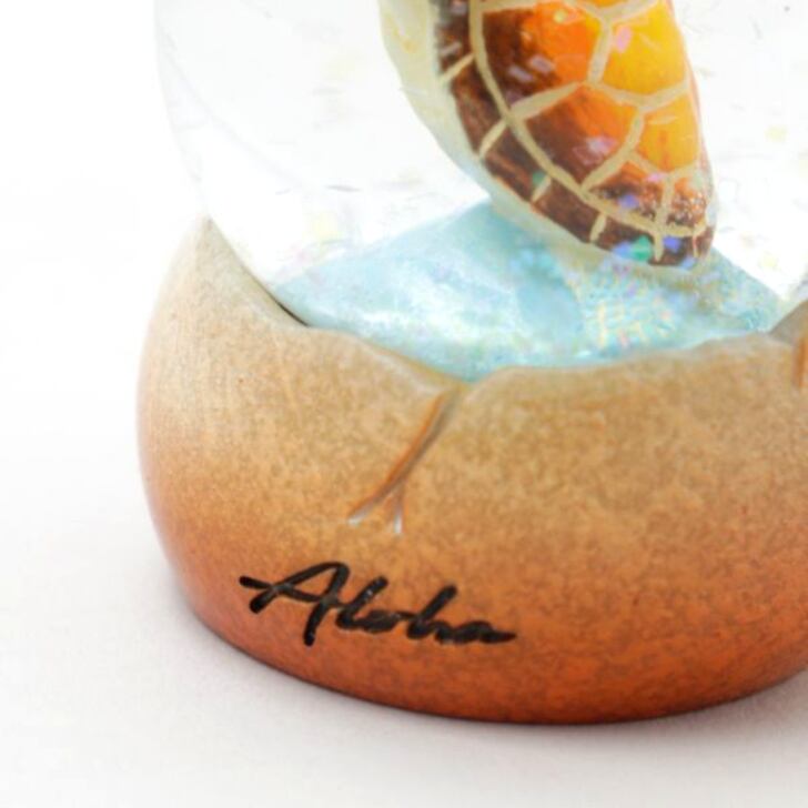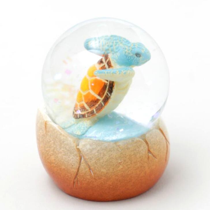 透明感のあるスノードームの中でホヌがゆったりと泳ぐ癒しのインテリアアイテム。