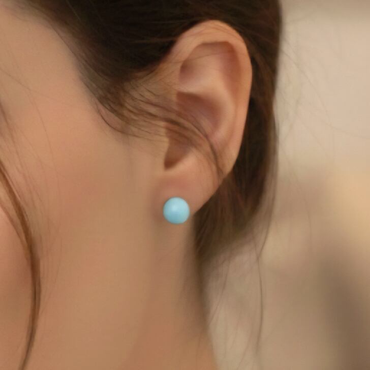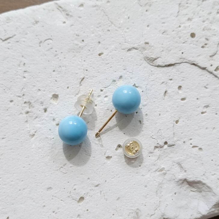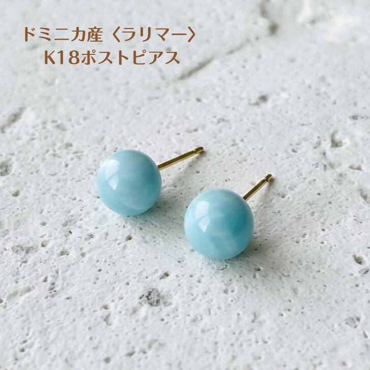 海をとじこめたような優しい水色が特徴のドミニカ産のラリマーを使用したK18突き刺し型ポストピアス。