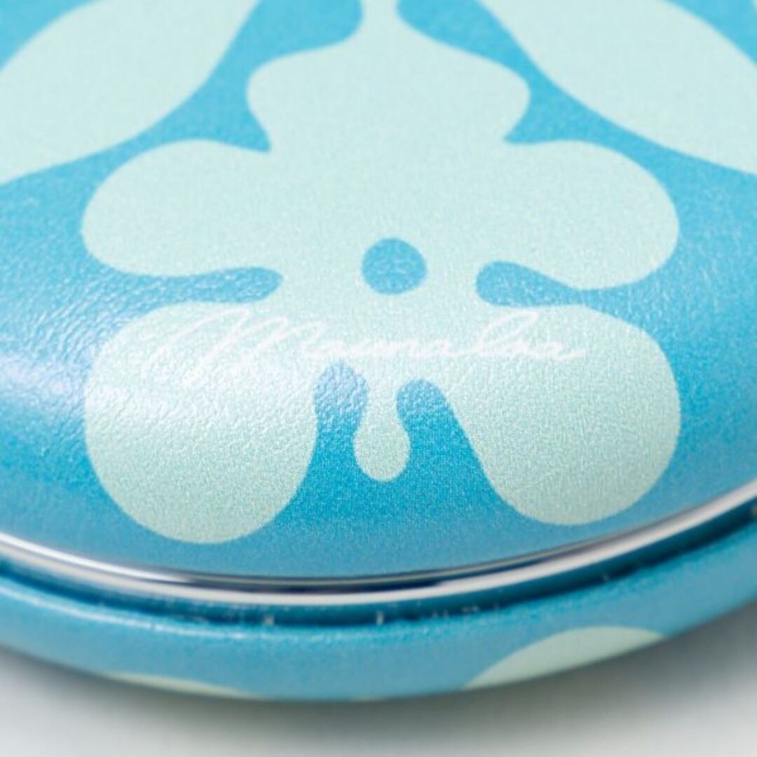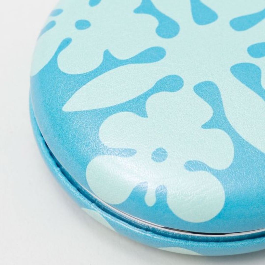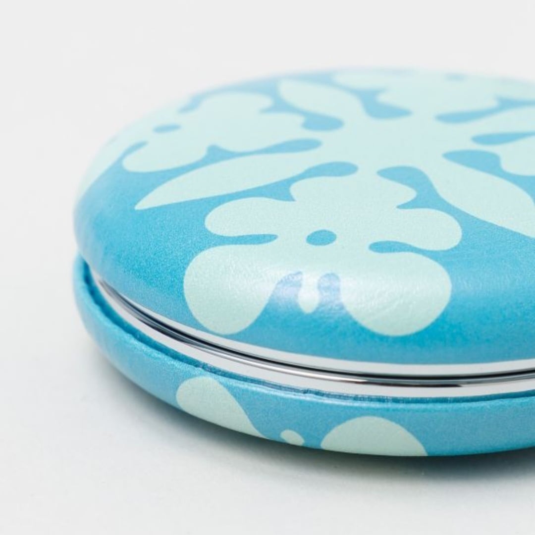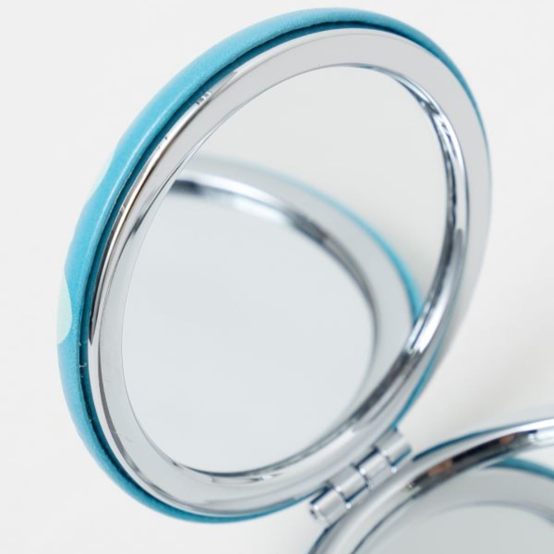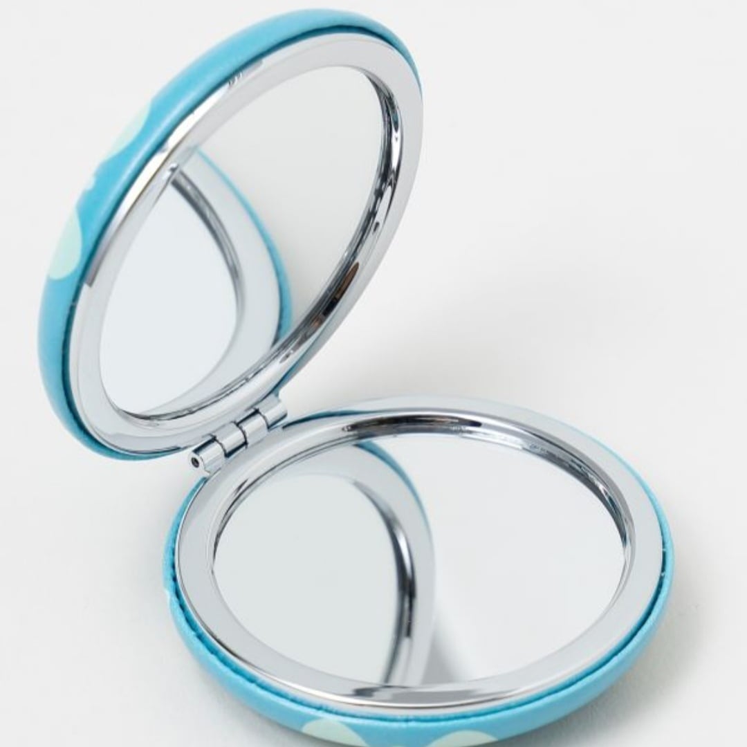 マカロンのような丸いフォルムが愛らしいコンパクトミラー。手のひらサイズで持ち運びしやすく、二面鏡のうち一面は拡大鏡付き。