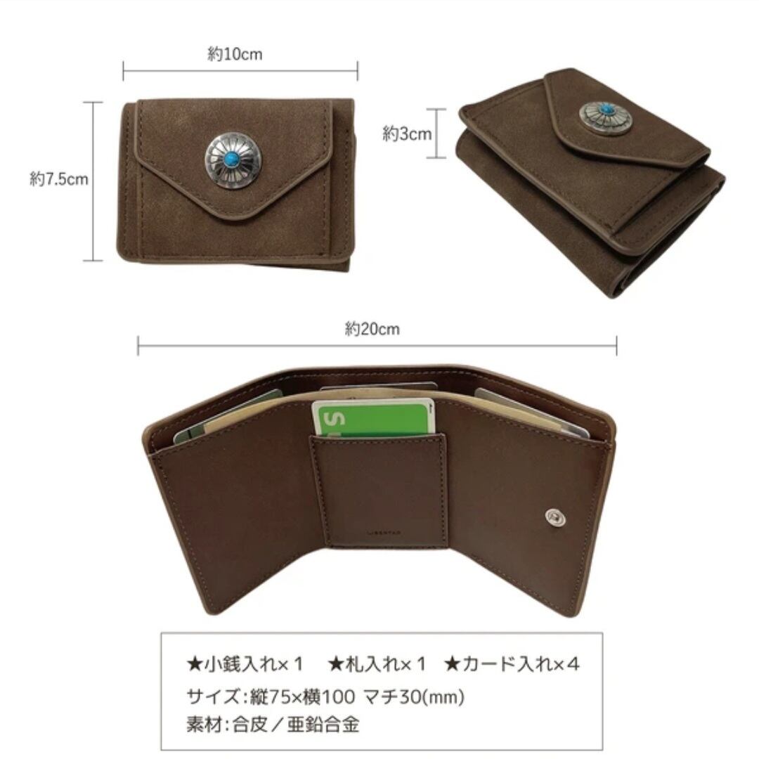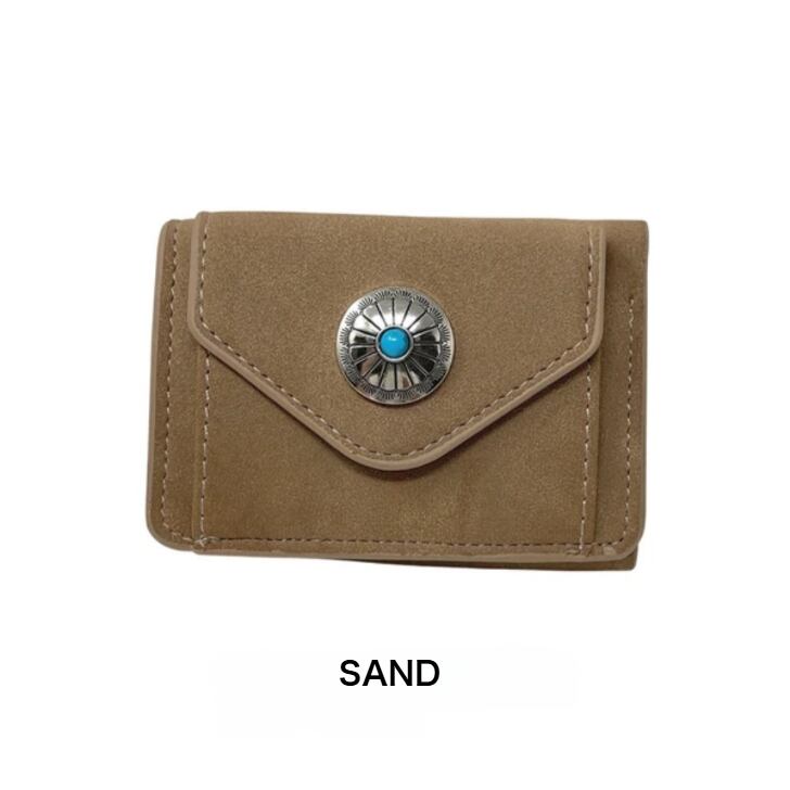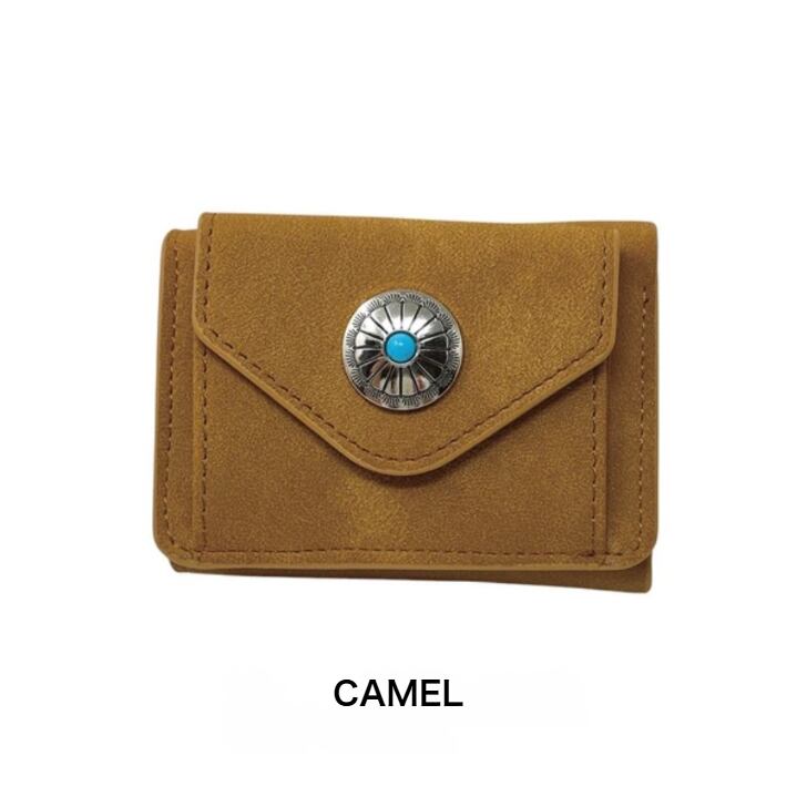 【コンチョ付き 三つ折り コンパクトウォレット】財布 三つ折り財布 コンチョ コンパクト シンプル 財布 三つ折り財布 コンパクト コインケース コンチョ ヌバック スウェード かわいい おしゃれ シンプル ミニ財布 CAMEL 小さめ プレゼント ギフト 母の日 誕生日 カード入れ