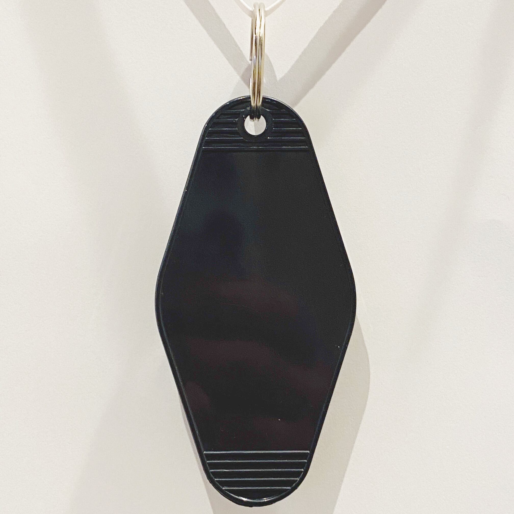 ホテルタグとは本来ホテルの部屋の鍵についているタグ。アメリカでは一昔前によく使われていたもので、部屋番号やホテルの住所が記載されています。忘れて持って帰ってしまった際などに、郵便ポストへタグごと投函すると、ホテルまで届けられるというシステム。そんなホテルタグをモチーフにしたレトロなキーホルダーです。
